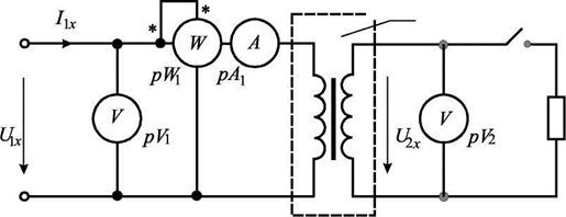 поэтому, измерив вольтметром PV1 первичное напряжение U1x и вольтметром PV2 - вторичное напряжение U2x, определяют коэффициент трансформации