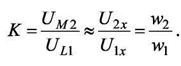 Этот коэффициент указывается на щитках электрических трансформаторов как отношение высшего напряжения к низшему (например, K = 6000/230).