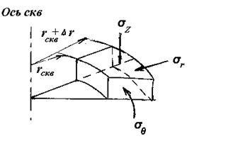 Под действием этих сил возникают нормальные напряжения, представленные в системе цилиндрических координат (показанные на рис.21):