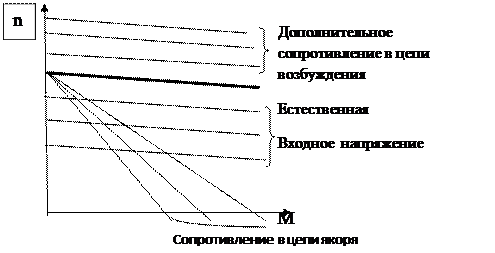 – изменением магнитного потока путем введения дополнительного сопротивления в цепь обмотки возбуждения D =2:1, регулирование происходит только вверх;