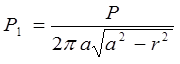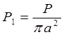 Экспериментами установлено, что такое неравномерное распределение давления по плоскости контакта наблюдается только в первоначальный момент вдавливания. При дальнейшем вдавливании давление по площади можно принять равномерно распределенным. В этом случае давление в любой точке круга можно определить по формуле: