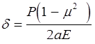 В первоначальный момент, когда имеет место неравномерное распределение давления перемещение штампа в полупространство можно определить по формуле: