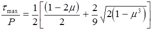 Рис.29 | На рис.29 показано распределение максимальных касательных напряжений в относительных единицах. Величину максимального касательного напряжения можно определить по формуле С. П. Тимошенко: |