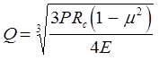 Перемещение вглубь тела (первоначальной) точки контакта зависит от величины приложенной нагрузки и определяется по формуле: