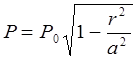 При удалении от центра к периферии величина давления (Р) изменяется (уменьшается) по следующему закону: