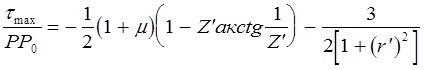 Максимальные касательные напряжения по оси симметрии можно подсчитать по формуле: