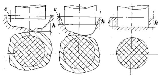 При вдавливании штампа в горные породы различных групп по твердости получаются различные зоны разрушения (см. рис.40).