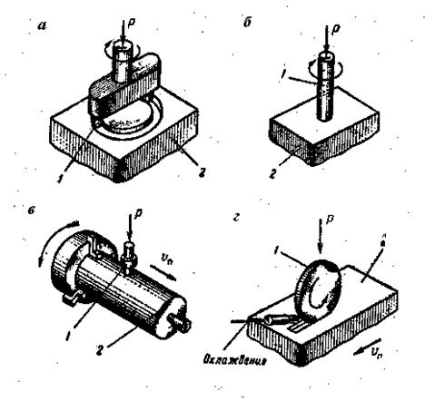 Учитывая условия работы породоразрушающего инструмента при изучении абразивных свойств горных пород, применяются следующие схемы изнашивания: