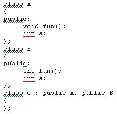 невозможно определить, к какому из двух методов fun происходит обращение. Ситуация называется неоднозначной, и компилятор выдаст ошибку. Заметим, что ошибка выдается не при определении класса C, в котором заложена возможность возникновения неоднозначной ситуации, а лишь при попытке вызова метода fun.