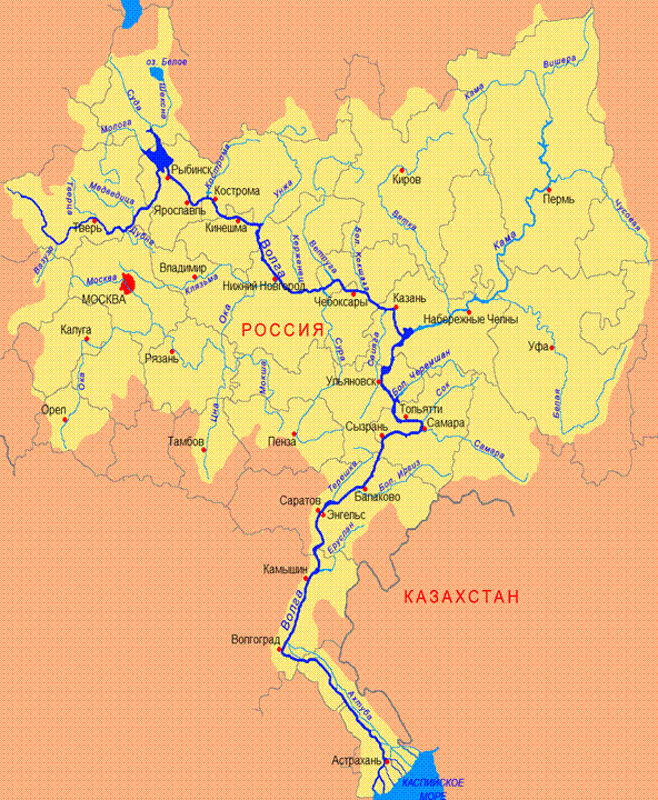 Волга - самая большая река европейской части России. Общая длина Волги 3531 км. По протяженности она занимает 14-е место, по площади бассейна (1360 тыс. км2) - 12-е среди рек мира. Она берет начало на Валдайской возвышенности из ключа, лежащего на высоте около 225 м над уровнем моря, недалеко от деревни Волговерховье Осташковского района Тверской области и впадает в Каспийское море. Исток Волги расположен в Осташковском районе Тверской области. Волга начинается у юго-западной околицы деревни Волговерховье. На окраине болотца имеются несколько родников, объединённых между собой в небольшой водоём, один из которых считается истоком реки Волги. Вокруг родника построена часовня, к которой ведёт мостик. Из водоёма Волга вытекает обыкновенным ручейком шириной 50-100 см и глубиной до 30 см. По Волгоградской области Волга протекает на протяжении 318 км. Крупнейшим притоком Волги в пределах области является Еруслан. В районе г. Волжского от нее отделяется рукав Ахтубы, который течет параллельно главному руслу. Между ним и рекой Ахтубой образовалась Волго-Ахтубинская пойма, достигающая ширины 25-30 км, которая изрезана протоками и озерами. В северной части Волгограда река была перекрыта плотиной ГЭС, в результате чего образовалось Волгоградское водохранилище, длина которого 546 км, ширина - 4-7 км., а на некоторых участках до 10-14 км. Главное русло Волги имеет ширину от 1 до 2 км, глубина Волги ниже плотины ГЭС колеблется от 5 до 15 м.
