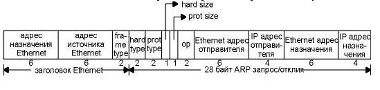 Двухбайтовый тип фрейма (frame type) Ethernet указывает, данные какого типа, пойдут следом. Для ARP запроса или ARP отклика это поле содержит 0x0806.