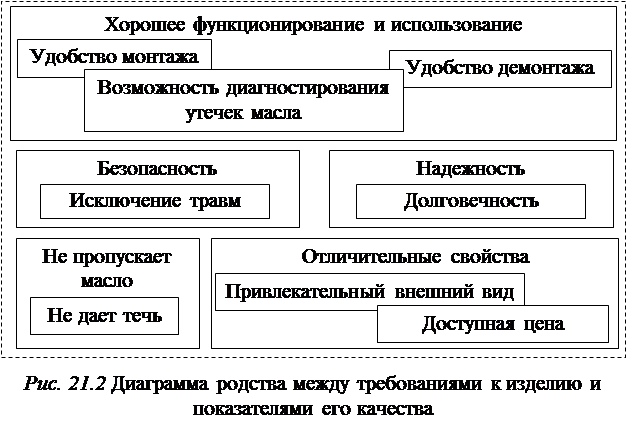 Для выявления показателей качества, которыми, с точки зрения потребителя, должна обладать масляная труба высокого давления, на ОАО БМЗ проводили опрос работников различных служб (внутренних потребителей) предприятия, занимающихся проектированием, изготовлением, сборкой и испытаниями данного изделия. Собранные данные объединяли в сродственные группы (рис. 21.2) и для каждой из групп определяли направленность.