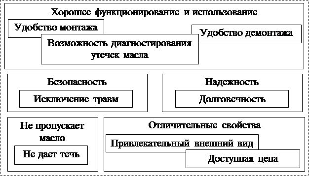 Следующим этапом является перевод требований потребителя в характеристики изделия, т.е. конкретизация требований к конструкторской разработке. На этом этапе очень важно, чтобы требования к конструкции в большей степени определялись функциональными свойствами изделия, а не отдельными частями конструкции.
