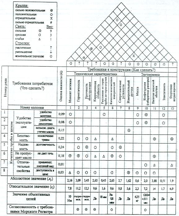 В дополнение к требованиям потребителя (заказчика), обязательными должны быть некоторые технические, управляющие и регулировочные показатели, в противном случае изделие будет неконкурентоспособным. В случае с масляной трубой высокого давления эти требования должны соответствовать требованиям Морского Регистра, поэтому некоторые требования «Что сделать?» тесно взаимосвязаны с конструкторскими «Как сделать?», обозначенными на рис. 21.4 номерами колонки 2, 3, 4, 6, 10.