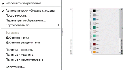 ■ Автоматически убирать с экрана. Окно инструментальных палитр может автоматически разворачиваться и сворачиваться (так называемый режим разворачивания/сворачивания) при подведении/отведении курсора к строке заголовка окна.