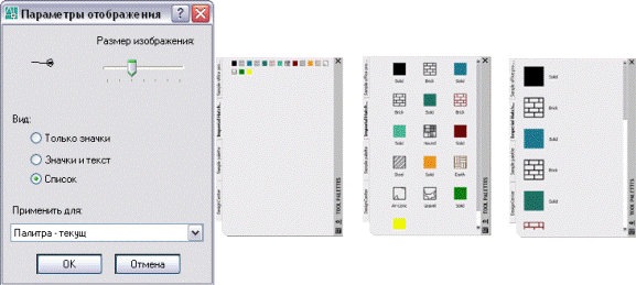 ■ Виды. Стиль и размер отображения значков в инструментальной палитре можно изменить.
