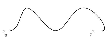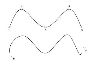 На следующем рисунке показан сплайн с теми же определяющими точками, но с разными направлениями касательных в первой и последней точках.