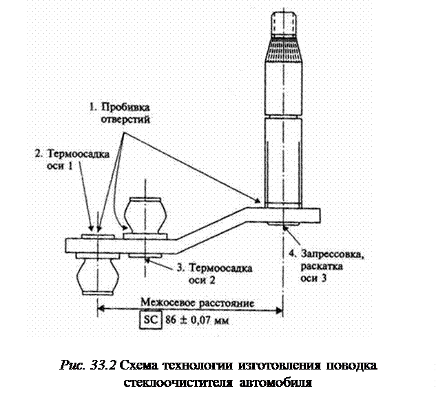 Разрабатывается технология изготовления поводка стеклоочистителя для новой модели автомобиля. Конструкция этого поводка и последовательность ряда технологических операций приведены на рис. 33.2