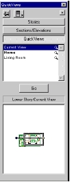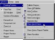 · Начало работы с быстрыми видами: Кликнем на палитре QuickViews в верхней-правой части экрана. Если палитры здесь нет, перейдите в меню Window, выберите Floating Palettes и в ней Show QuickViews, или кликните на кнопке QuickViews в нижней части поэтажного плана.