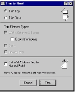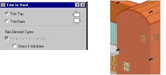 Выделив стену, выберем команду Trim to Roof в меню Edit Menu. Выберем Trim Top в появившемся диалоговом окне. Кликнем на кнопке Trim чтобы обрезать стену.