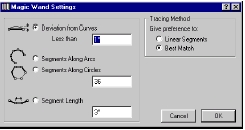 Создание крыши с цилиндрическим сводом в 3D: Активизируем Roof Tool, кликнем на кнопку Edit Mode в палитре 3D Navigation и выберем геометрический метод Barrel Vaulted (цилиндрический свод) в окне информации. Далее откроем Magic Wand Settings (параметры волшебной палочки) в меню Tools и изменим Deviation from Curves (Отклонение от Кривых) с 2" на 1".