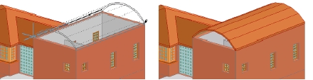Замечание: Clean Wall & Beam Intersections должно находится в положении ON (включено) при создании крыши с цилиндрическим сводом в 3D.