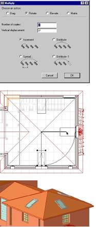 Вы так же может располагать потолочные окна на других крышах, используя команду multiply. Сначала выбираем потолочное окна в окне поэтажного плана и после этого открываем меню Edit и выбираем команду Multiply.