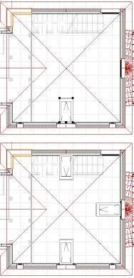 4. Размещение слуховых и потолочных окон: Потолочное окно, размещенное на верхней части крыши будет автоматически вставлено в крышу и откорректировано в соответствии с углом наклона крыши, повернуто под правильным углом (паралелльно ссылочным линиям крыши), и отверстие под окно будет автоматически вырезано в крыше.