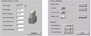 · Установка параметров: Диалоговое окно Object Settings позволяет вам выбрать объект xs7-footing. Если вы выберите его, отобразится интерфейс объекта. Он содержит две страницы, на первой вы можете установить тип основания, опорную стену и размеры фундамента, на второй странице вы найдете параметры для атрибутов профиля. Измените размеры как вам необходимо и нажмите на OK.