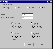 Выберем инструмент стрелку, кликнем на балке чтобы подсветить ее, и выберем Multiply из меню Edit. Выберем в этом меню Spread, введем 1'-4" в качестве промежутка и кликнем на OK.