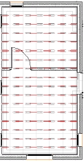 · Создание обрешетки пола (Floor Framing): выберем параметр Distance Marker в окне координат и введем 1'-4". Переместим курсор на внутреннюю сторону стены. На стене отобразится маркер. С активным инструментом Beam кликнем на маркере и переместим курсор к противоположной стене до тех пор пока не увидим что курсор принял вид закрашенного карандаша, и тогда кликнем, чтобы завершить нашу первую балку.