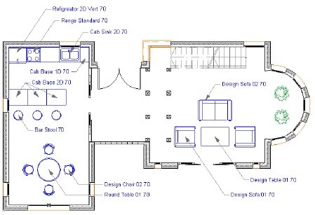 · Выбор уровень: выберем соответствующий уровень для каждой библиотечной детали: Фурнитурные объекты разместим на уровне Furniture, слесарные объекты разместим на уровне Plumbing, различные устройства разместим на уровне Appliances.