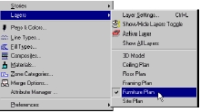 · Установим рабочую среду на комбинацию уровней Furniture Plan: Чтобы установить рабочую среду в Furniture Plan, выберем комбинацию уровней Furniture Plan в Options/Layers/Layer Settings.