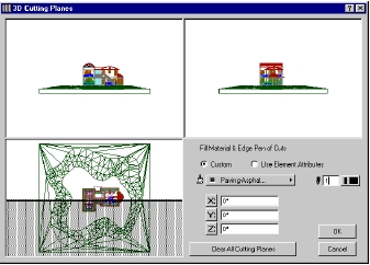6. 3D-виды: прежде всего мы создадим перспективный вид с 3D-разрезом, чтобы показать структуру и интерьер здания. Выберем 3D Cutting Planes в меню Image и установим секущий план как показано ниже.