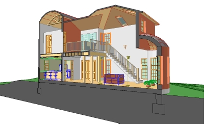 Изменим 3D View Mode на Hidden Line. Мы увидим 3-мерный вид здания как показано ниже.