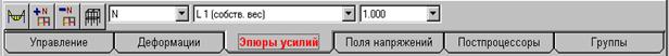 Вы, наверное, уже обратили внимание, что независимо от режима в комплексе сохраняется преемственность функций управления. Поэтому не будем подробно останавливаться на анализе результатов расчета усилий, а только рассмотрим инструментальную панель раздела Эпюры усилий (рис. 1.2.16).