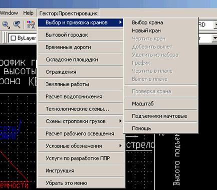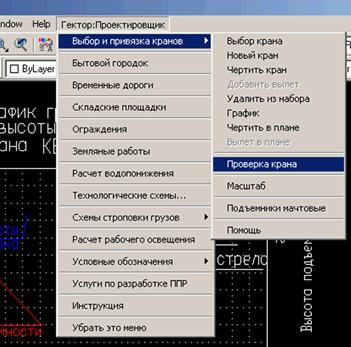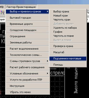 В главном меню Гектор:Проектировщик находится пункт «Привязка кранов».