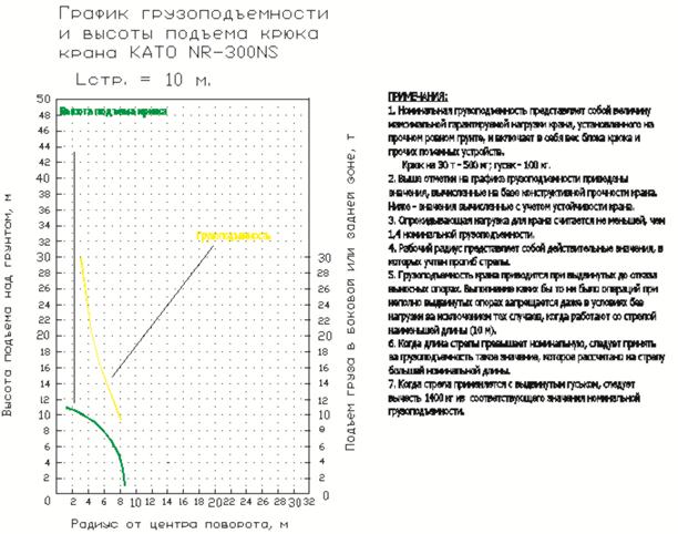 График автоматически может быть вставлен в чертеж, и соответствует выбранному стреловому оборудованию.