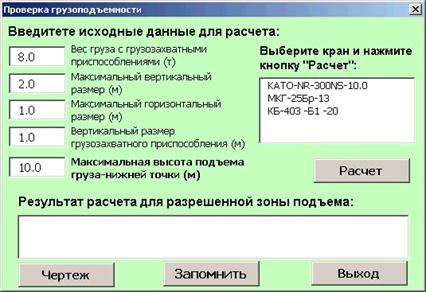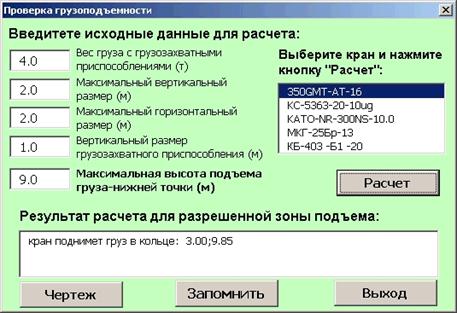 Заполнив исходные данные для груза и выбрав кран, нажмите кнопку «Расчет».