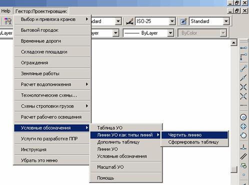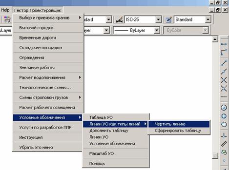 В меню AutoCAD Гектор: Проектировщик находится пункт «Условные обозначения».