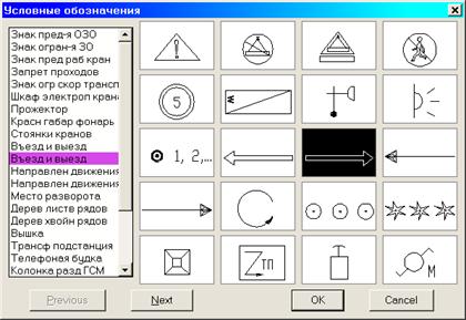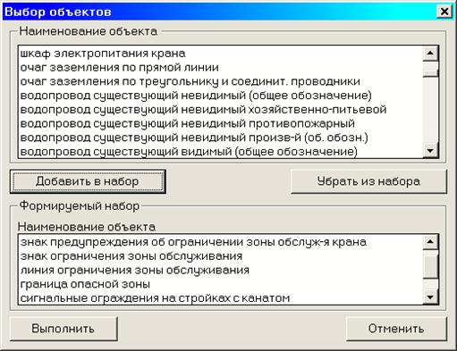 Для формирования таблицы экспликации условных обозначений необходимо выбрать их из базы данных.