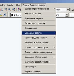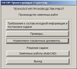 Путь к модулю: Главное окно - Технология производства работ – Земляные работы - Решение задачи (AutoCAD) – в меню AutoCAD «Гектор: Проектировщик» пункт «Земляные работы»