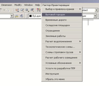 В главном меню Гектор:Проектировщик находится пункт меню «Бытовой городок».