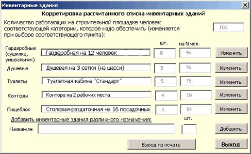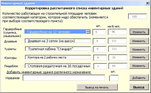 • Обеспечение комплектации бытового городка инвентарными зданиями как из базы данных, так и собственными зданиями пользователя.