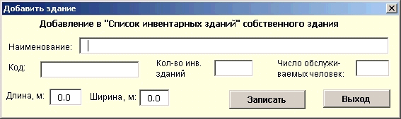 …в форму «Добавить здание». Надо заполнить все поля и нажать клавишу «Записать», можно ввести еще одно здание и т.д., затем «Выход».