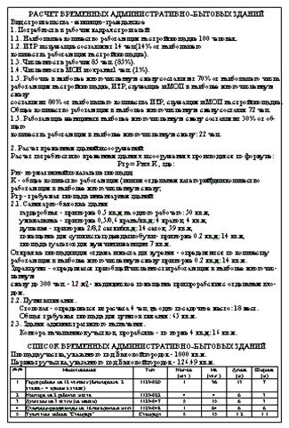 • Расчет потребности во временных административно-бытовых зданиях и сооружениях.