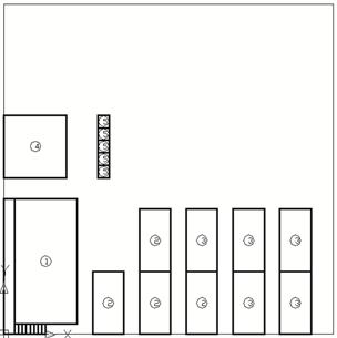 Пример размещения зданий в заданных границах на чертеже согласно расчету с выполненной блокировкой.