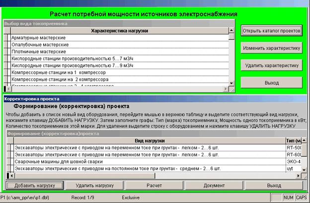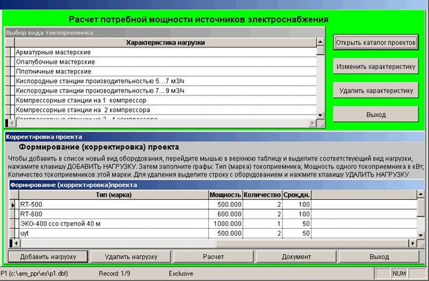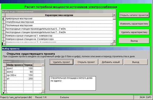 • Расчет нагрузок и расхода электроэнергии на строительно-монтажных работах выполнен на базе Visual FoxPRO.