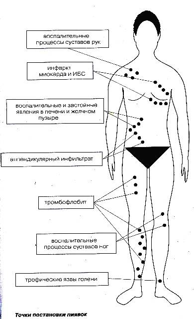 Места постановки пиявок определяет врач-гирудотерапевт..
