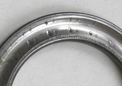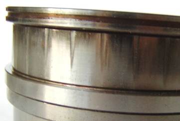 Бринеллирование проявляется в появлении вмятин на беговых дорожках с шагом равным шагу тел качения, является следствием ударных воздействий во время монтажа (рисунок 5.47).